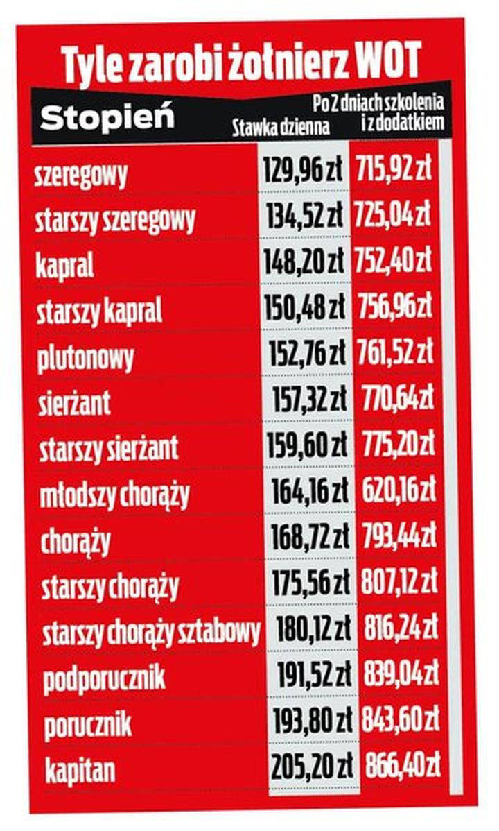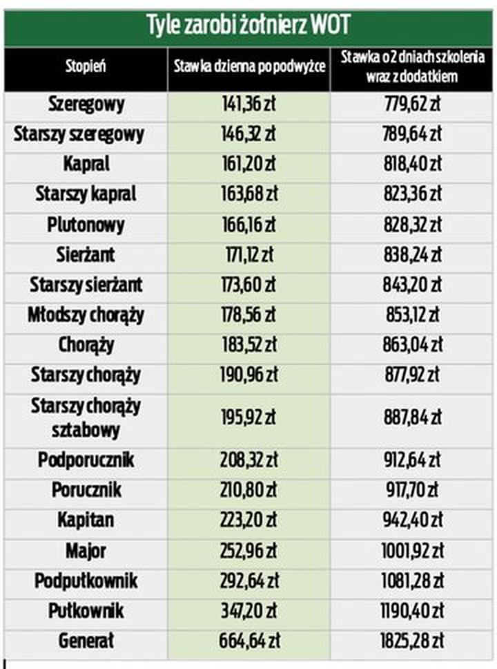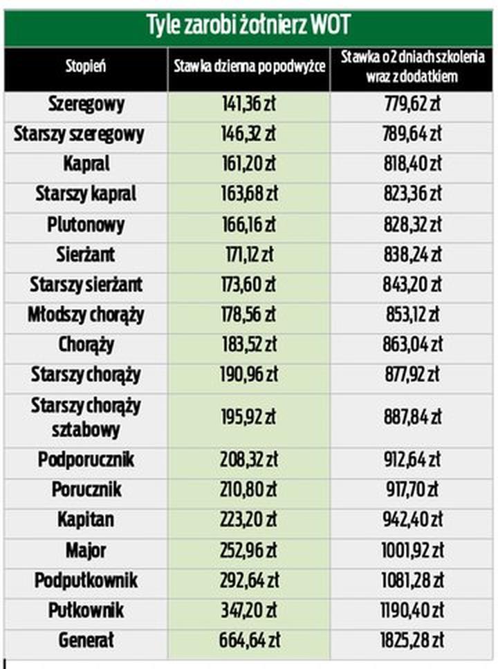 Porównanie zarobków WOT z innymi formacjami wojskowymi w Polsce